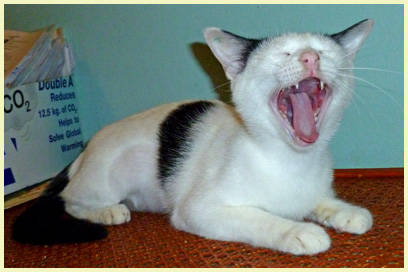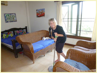 Pomelo is the only long-term inhabitant There we've got a large quantity of free-running cats; from the moment a few dogs show up , cat-hunting may start any minute.
